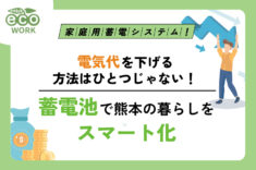オール電化の落とし穴?熊本で導入前に知っておきたいメリットとデメリット 2026年1月5日 電気代を下げる方法はひとつじゃない!蓄電池で熊本での暮らしをスマート化 2025年12月30日 口コミの良さには理由がある!熊本で信頼できる蓄電池会社の共通点 2025年12月20日 実績のある蓄電池会社を選ぶ理由|熊本で失敗しない業者選びのポイント 2025年12月15日 蓄電池の仕組みを徹底解説!熊本で電気を貯めて使う新しい暮らし方とは 2025年12月5日 太陽光発電を導入するメリット・デメリット徹底解説!熊本の気候に合わせた選び方 2025年11月30日 秋におすすめの蓄電池活用法|熊本で停電対策と省エネを両立するポイント 2025年11月15日 蓄電池の役割とは?スマートホームとの連携で未来の暮らしを実現! 2025年11月1日 蓄電池を設置する場所の選び方【熊本編】|屋内・屋外のメリット&デメリットを比較解説 2025年10月31日 冬の暖房費を劇的に削減!蓄電池と暖房機器の連携術で温暖生活|熊本の蓄電システムはエコワーク 2025年10月15日 前のページ 最近の投稿 オール電化の落とし穴?熊本で導入前に知っておきたいメリットとデメリット 電気代を下げる方法はひとつじゃない!蓄電池で熊本での暮らしをスマート化 口コミの良さには理由がある!熊本で信頼できる蓄電池会社の共通点 実績のある蓄電池会社を選ぶ理由|熊本で失敗しない業者選びのポイント 蓄電池の仕組みを徹底解説!熊本で電気を貯めて使う新しい暮らし方とは カテゴリー お客様の声 お役立ちコラム 未分類 Contact Us お問い合わせや資料請求・ご相談などもお気軽にどうぞ お問い合わせはこちら 資料請求はこちら RECRUIT 採用情報はこちら▶︎ トップページ 蓄電システム・太陽光 太陽光発電 蓄電システム オール電化 EVパワーステーション(V2H) 施工例 会社概要 私たちについて よくあるご質問 採用情報 お問い合わせ 資料請求 ブログ プライバシーポリシー