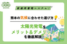 蓄電池導入前に知っておきたい!熊本の電力会社との契約条件と注意点 2025年8月29日 蓄電池導入後のアフターサービス&保証内容完全ガイド|熊本で安心して使い続けるために 2025年8月15日 次のページ 最近の投稿 太陽光発電を導入するメリット・デメリット徹底解説!熊本の気候に合わせた選び方 秋におすすめの蓄電池活用法|熊本で停電対策と省エネを両立するポイント 蓄電池の役割とは?スマートホームとの連携で未来の暮らしを実現! 蓄電池を設置する場所の選び方【熊本編】|屋内・屋外のメリット&デメリットを比較解説 冬の暖房費を劇的に削減!蓄電池と暖房機器の連携術で温暖生活|熊本の蓄電システムはエコワーク カテゴリー お客様の声 お役立ちコラム 未分類